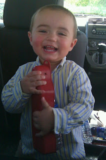 It is Nursery time, Braiden went to Nursery by him self, we both went to drop him off but it was not working out very well, I told Julio to go and I was the one that stayed there a little bit longer, I believe he realized that it was time for him to be there without Mommy or Daddy and he started to cry, then he went to look for a toy and I disappeared, I knew it was time for me to go. During the entire second hour of the block I felt empty, I was missing something, I was wondering how he was doing so, I couldn't resist and I peeked twice, as I was trying to open the door just a little bit that I could see inside, people walking by told me "don't let him see you", he did not see me but I saw he was crying, then the second time that I looked he was being held by one of the sisters. During second and third hour I was expecting one of the sisters to come look for either of us but nobody showed up so I felt it was a success. When we went to pick him up, we asked how he did and we were told he did just fine, he cried a little bit and then he wanted to cuddle but other than that he did well. He was so excited to see Daddy and Mommy, of course Mommy had to take pictures for the blog so here they are..